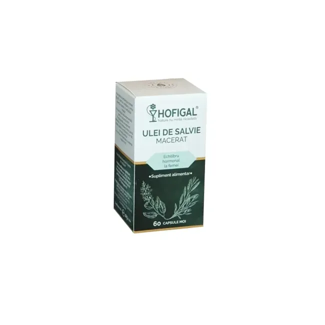 Descriere: Acest supliment conține ulei de salvie macerat ambalat în capsule moi, recomandat pentru susținerea stării generale de bine, echilibrului hormonal feminin și funcțiilor fiziologice naturale. Poate fi util în special în perioadele cu disfuncții ale ciclului menstrual sau simptome asociate menopauzei, reglarea digestiei și tonifiere generală. Principalele beneficii: - poate contribui la apararea naturala a organismului; - poate contribui la sustinerea sistemului imunitar; - poate contribui la reglarea functiilor digestive si biliare; - poate contribui la functionarea normala a tractului digestiv; - poate contribui la reglarea ciclului menstrual; - poate contribui la sustinerea sanatatii aparatului respirator, usureaza respiratia in perioadele reci ale anului; - poate contribui la tonifierea si revigorarea organismului; - poate contribui la mentinerea starii generale de bine. Ingrediente: Capsula: 500 mg extract uleios (macerat) de Salvie (Salvia officinalis) şi capsula (gelatina, glicerina, apa purificata Mod de administrare: Cate 1-2 capsule moi de 3 ori pe zi, dupa mesele principale sau la recomandarea specialistului. Precauții și contraindicații:â - A nu se depăși doza recomandată. - În sarcină, consultă medicul înainte de utilizare; poate reduce secreția lactată în alăptare. - Contraindicat persoanelor sub 18 ani și celor cu afecțiuni neuropsihice (ex. epilepsie). - La apariția unor efecte nedorite, întrerupe utilizarea și consultă medicul sau farmacistul. - Suplimentul nu înlocuiește o dietă variată și un stil de viață sănătos. Caracteristici Cantitate: 60 capsule moi Producator: HOFIGAL Utilizare: Metabolism Reglator hormonal