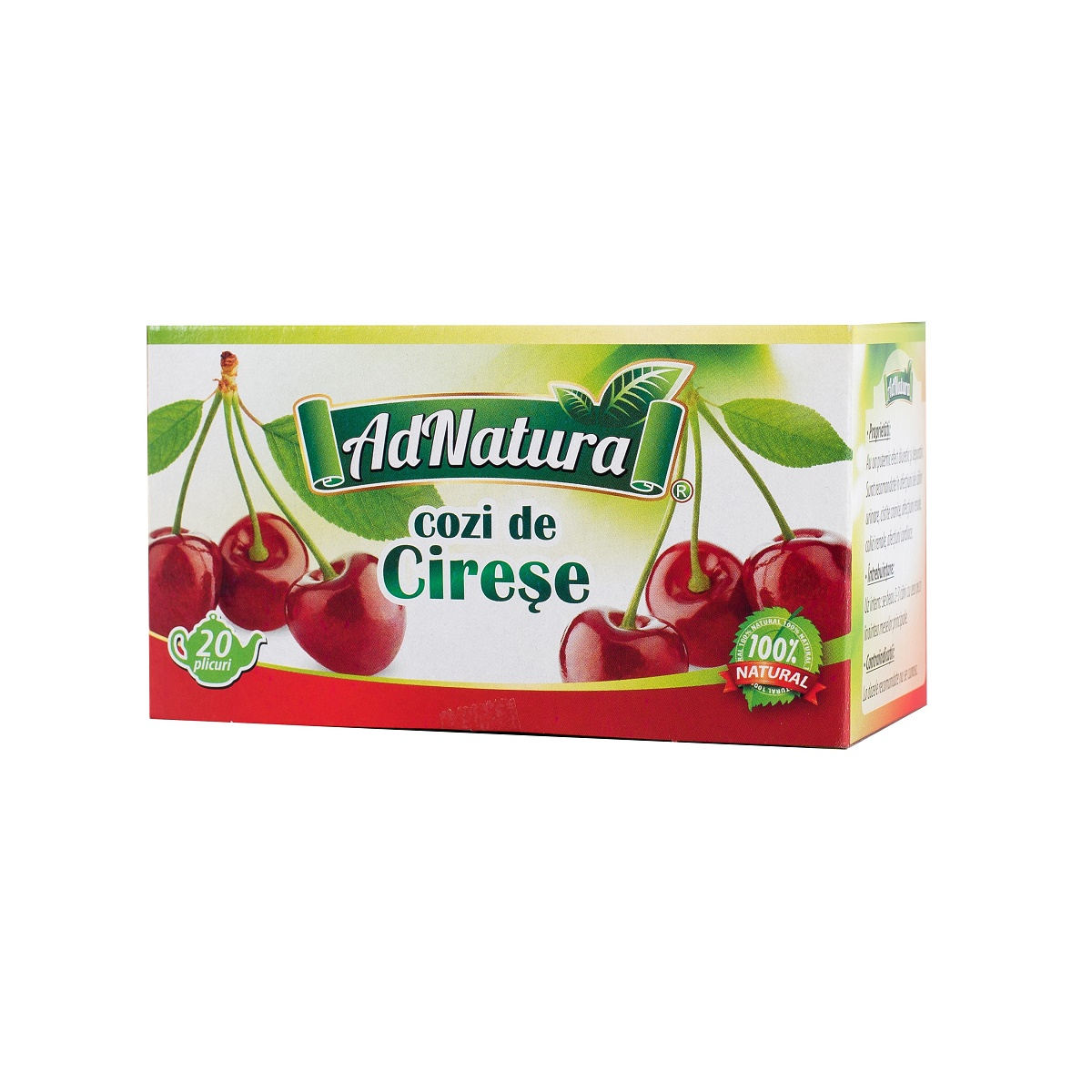 Ceai cozi de cireșe, 20 plicuri, AdNatura [6422875020299] Proprietăți: - au un puternic efect diuretic și depirativ; - recomandate în afecțiuni ale căilor urinare, cistite cronice, afecțiuni renale, colici renale, afecțiuni cardiace. Ingrediente: Cozi de cireșe. Mod de utilizare: Uz intern - infuzie. Peste 1-2 pliculețe se toarnă 250 ml de apă clocotită. Vasul se acoperă și se lasă la infuzat 10-15 minute. Se beau 2-3 căni cu ceai pe zi înaintea meselor principale. Prezentare: 20 plicuri