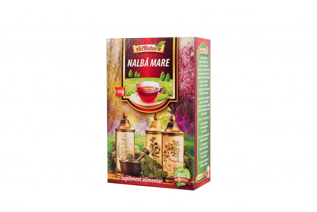 Ceaiul de nalbă-mare: Menține sănătatea respiratorie prin acțiuni emoliente și demulcente asupra mucoasei orofaringiene. Normalizează secrețiile bronșice. Prezintă efecte benefice asupra pielii. Mod de utilizare: Intern: infuzie – peste o linguriţă cu plantă se toarnă 250 ml de apă clocotită. Vasul se acoperă şi se lasă în repaos 10-15 minute, după care se strecoară. Se beau 2-3 căni cu ceai pe zi, pentru normalizarea secreţiilor bronşice şi pentru păstrarea sănătăţii căilor respiratorii superioare. Extern: infuzie din 3 linguri cu plantă la un litru de apă clocotită, se foloseşte pentru comprese, spălarea tenului, reduce cearcănele și atenuează ridurile.. Atentionari : La dozele şi la modul de utilizare recomandate nu se cunosc efecte adverse, excepţie putând face unele persoane alergice la oricare dintre ingrediente. A nu se depăși cantitatea zilnică recomandată.