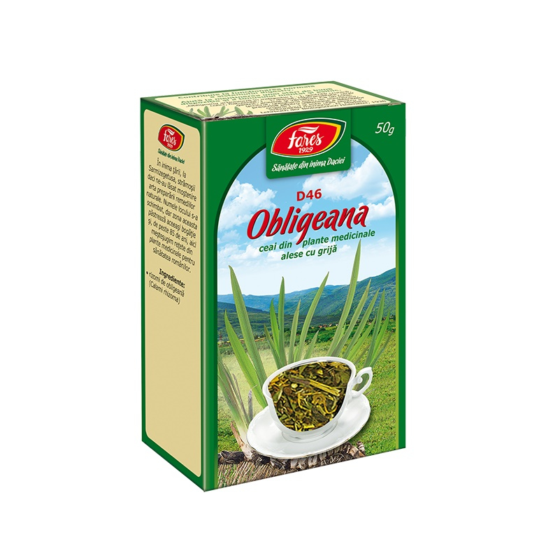 Ceai Obligeană rădăcină, D46, 50 g, Fares [5941141001493] Proprietăți: Contribuie la funcționarea normală a sistemului digestiv. Ajută la menținerea unei stări de relaxare și de bine mentală și psihică. Ingrediente: Rizomii plantei Acorus calamus L., fam. Araceae, care conțin ulei volatil cu asarona, calamol; tanin; substanță amară; rezine; zaharuri; mucilagii; săruri minerale; vitaminele B 1 și C. Efect: Stomahic (stimulează secreția sucurilor gastrointestinale), carminativ (ajută eliminarea gazelor intestinale); antispastic gastrointestinal; coleretic-colagoc (stimulează secreția și eliminarea bilei), diuretic cu eliminare de acid uric, tonic nervos, sedativ, verîmfug. Întrebuințări principale: Indigestie; digestie lentă; gastriță, ulcer gastric și duodenal, balonări, colici gastrointestinale, anorexie. Alte întrebuințări: Tulburări neurovegetative manifestate prin agitație, anxietate, insomnie, tulburări de memorie, parazitoze intestinale. Contraindicații: Sarcină, alăptare, copii sub 6 ani. Preparare: Se prepară decoct din o jumătate de linguriță de rădăcină mărunțită la o cană cu apă. Mod de administrare: Se beau treptat 1-2 căni cu ceai pe zi, înainte de mesele principale. Prezentare: 50 g