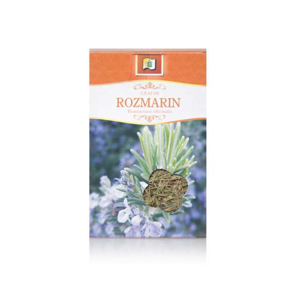 Descriere Rozmarin Frunze 50gr de la STEFMAR Compoziţie: Frunzele plantei de rozmarin - Rosmarinus Officinalis L. Principii active: Ulei volatil in care predomina camfenul, borneolul si camforul, acid rosmarinic, flavone, triterpene, saponine, tanin, vitamina C. Acţiune CEAI ROSMARIN: Tonic-amar, coleretic, colagog, antiseptic, diuretic, antireumatismal, adaptogen, tonic nervos, carminativ (reduce gazele intestinale), stimulent puternic al circulaţiei sanguine, cicatrizant, aromatic. Recomandări: Intern: colici abdominale, dispepsii, balonari si afectiuni gastro-intestinale, indigestie, anorexie, afectiuni hepatice si renale, reumatism, astenie, surmenaj fizic si intelectual, tonifierea organismului. Extern: reumatism, entorse, umflături articulare, reconfortarea organismului. Mod de administrare: Intern: infuzie-peste o lingurita cu plantă se toarna 250 ml apă clocotita. Vasul se acopera si se lasa in repaos 10-15 minute, dupa care se strecoara. Se beau 2-3 cani cu ceai pe zi, inainte de mesele principale. Extern: se prepara decoct din o lingura cu planta la 250 ml apa. Se fierbe 2-3 minute. Vasul se acopera si se lasa in repaos 10-15 minute, dupa care se strecoara. Se pun comprese cu decoct peste zonele afectate. Contraindicaţii: Nu se recomanda femeilor insarcinate. Intern, în cantităţi mari (peste 15 grame pe zi) rozmarinul este toxic, producând gastroenterite şi nefrite. 100% romanesc