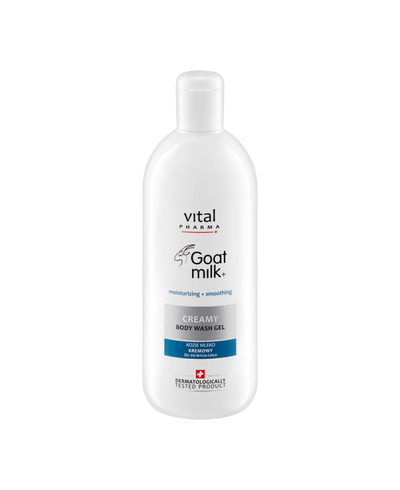 Gel de dus cremos Vital Pharma Goat Milk, 500ml Gelul de dus cremos este special conceput pentru pielea sensibila si predispusa la iritatii. Spuma densa si cremoasa curata usor, ingrijeste intens si improspateaza pielea lasand-o moale si neteda. Parfumul placut si delicat ofera un sentiment de relaxare. Ingrediente active: · Extract din lapte de capra · Acid lactic · Pantenol · Glicerina Extractul din lapte de capra este cunoscut si apreciat ca fiind un ingredient cosmetic datorita proprietatilor sale. Acesta contine proteine, lipide, vitamine si minerale valoroase pentru piele. Glicerina este un hidratant hidrofil. Acidul lactic asigura pH-ul adecvat produsului. Pantenolul are proprietati exceptionale de ingrijire si imbunatateste hidratarea epidermei. Testat dermatologic. Mod de utilizare: Aplicati un volum mic de gel pe pielea umeda si masati pana apare spuma. Apoi clatiti cu apa din abundenta. Masuri de precautie: In cazul in care produsul ajunge in ochii dvs., clatiti imediat cu apa din abundenta. Pastrati produsul in ambalajul original la temperatura camerei (15-25°C). A nu se ingheta. A se evita contactul direct cu lumina soarelui. Lotul și termenul de valabilitate a se vedea pe ambalaj. Produs în Polonia.