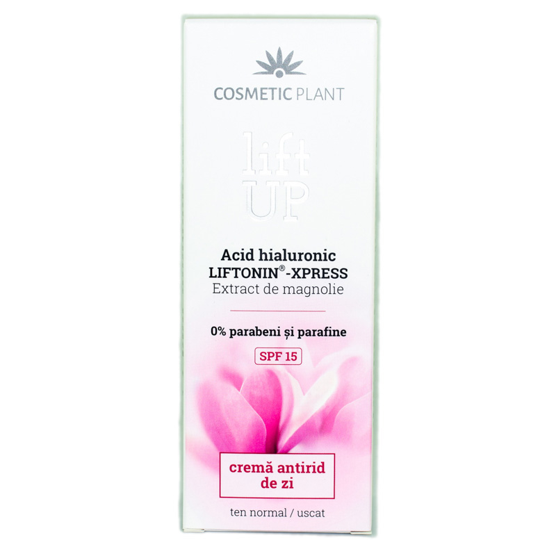 Cu o textura lejera, crema actioneaza inca din primele minute de la aplicare, netezind ridurile, crescand tonusul si hidratarea pielii, protejand-o de agresiunea factorilor externi. Principalul ingredient activ, acidul hialuronic, are o mare capacitate de a retine apa in piele, asigurand o hidratare imediata si de durata. Acesta umple ridurile din interior, reduce adancimea lor si reintinereste pielea. Testele in-vivo demonstreaza cresterea elasticitatii pielii cu 14% si reducerea asperitatilor sale cu pana la 10%, dupa 4-8 saptamani de utilizare. Liftonin-Xpress, extras din alge marine, este in ingredient inovativ cu efect de lifting instant. Testele in-vivo au demonstrat o intindere vizibila a pielii din zona fruntii, o diminuare cu 5-19% a adancimii ridurilor si o reducere a rugozitatii pielii cu 7-22% dupa numai o ora de la aplicare. Riboxyl-ul are efect de stimulare a sintezei componentelor matricei extracelulare (acid hialuronic, colagen si elastina), limiteaza degradarea pielii si previne aparitia ridurilor. Extractul de magnolie prezinta proprietati antioxidante si anti-inflamatoare. Crema contine filtre solare, care protejeaza tenul de actiunea nociva a radiatiilor UVA/UVB. Mod de utilizare: Se aplica dimineata pe pielea curata si tonifiata a fetei, gatului si decolteului, prin miscari circulare de masaj. Pentru in efect intens de lifting, se recomanda utilizarea cremei dupa aplicarea Serului Lift Instant. Pentru ingrijirea optima a pielii este indicat a se utilizatin combinatie cu Crema Antirid de noapte si Laptele demachiant pentru ochi din aceeasi gama.