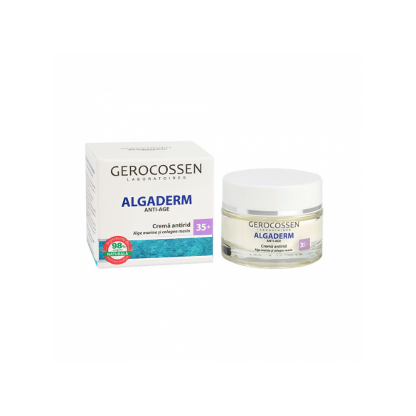 Adevarat elixir al tineretii, crema antirid cu alge marine are o textura usoara ce se absoarbe rapid in piele si-i furnizeaza ingredientele necesare pentru a preveni imbatranirea prematura. Formula ce contine 98% ingrediente de origine naturala, imbogatita cu alge si colagen marin, revitalizeaza tesutul, imbunatateste elasticitatea si rezistenta pielii, indeparteaza urmele de oboseala, previne aparitia ridurilor si le reduce pe cele existente. Pielea isi mentine tineretea si prospetimea mai mult timp. Formula 98% de origine naturala Utilizand crema antirid 35+ ALGADERM Anti-Age tenul dvs. va deveni mai neted, iar ridurile si liniile fine vor fi estompate. ALTE INFORMATII Tip ten: toate tipurile de ten Utilizare: in fiecare zi Varsta: 35+ Continut: 50 ml (ambalaj sticla) Testat Dermatologic BENEFICII - Impiedica aparitia unor noi riduri si linii fine - Are o formula naturala, bazata pe alge marine - Hidrateaza intens tenul - Imbunatateste fermitatea pielii MOD DE UTILIZARE Se recomanda aplicarea cremei antirid pe pielea curata, masand produsul in piele cu miscari delicate, pana este complet absorbit. Se aplica pe ten, gat si decolteu. INGREDIENTE ACTIVE Alge marine Colagen marin Aqua, Coco-Caprylate caprate, Persea gratissima (avocado) oil, Glycerin, Cetearyl alcohol, Butyrospermum parkii (Shea) butter, Hydrogenated vegetable oil, C14-22 Alcohols, C12-20 Alkyl glucoside, Sesamum indicum seed oil, Simmondsia chinensis (jojoba) oil, Argania spinosa kernel oil, Fucus vesiculosus extract, Collagen, Sodium polyacrylate, Parfum, Phenoxyethanol, Ethylhexylglycerin, BHA, Tetrasodium EDTA.
