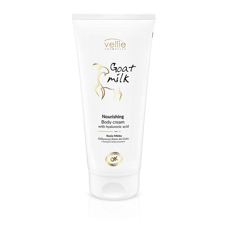 Crema hranitoare pentru corp cu extract din lapte de capra si acid hialuronic a fost creata in special pentru ingrijirea zilnica a pielii sensibile si predispusa la iritatii. Aceasta calmeaza pielea si o lasa moale si neteda la atingere. Hidrateaza delicat si reface bariera naturala de protectie a pielii, fiind perfecta pentru ingrijirea zilnica. Produs testat dermatologic, fara parabeni. Ingrediente active: - Extract din lapte de capra - Acid hialuronic (Hialuronat de sodiu) - Ulei din seminte de in - Parafina lichida - Ulei de palmier - Extract din aloe vera - Glicerina Gama Vellie Goat Milk cu extract din lapte de capra contine o serie de produse cu numeroase beneficii, datorita ingredientelor atent selectate. De secole, laptele de capra este unul dintre cele mai sanatoase ingrediente naturale pentru produsele cosmetice, atat pentru curatare cat si pentru ingrijirea pielii fetei si corpului. Este unul dintre resursele naturale cele mai valoroase si eficiente, cu efecte hidratante foarte puternice. Produsele cosmetice pe baza de lapte de capra au fost de-a lungul istoriei dedicate persoanelor cu pielea sensibila, extrem de uscata, atopica sau predispusa la iritatii. Laptele de capra ofera pielii minerale valoroase si vitamine, influenteaza eficient colagenul, astfel incat pielea pastreaza o mai mare flexibilitate. De asemenea, contine vitamine din grupul B, vitamina A, proteine, acid lactic şi substanţe active care ofera luminozitate pielii. Mod de utilizare: Intindeti o cantitate mica de crema pe piele si masati. In functie de nevoia si starea pielii, se poate aplica de mai multe ori pe zi. Pentru a asigura ingrijirea completa a pielii, se recomanda utilizarea impreuna cu Gelul de dus Revigorant Vellie Goat Milk cu extract din lapte de capra.