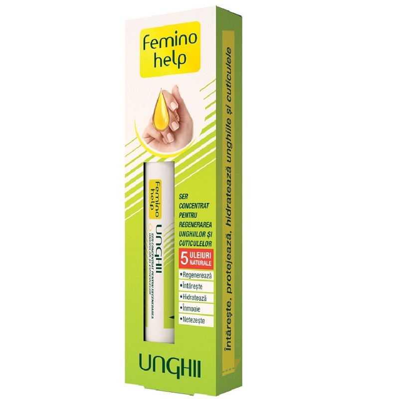 Ser concentrat pentru regenerarea unghiilor și cuticulelor Feminohelp, 2 ml, Zdrovit [5901501019872] Proprietăți: Serul regenerează în mod eficient unghiile și cuticulele fragile și deteriorate. Formula inovatoare, îmbogățită cu 5 uleiuri naturale, întărește și restaurează unghia, protejând-o împotriva ruperii și despicării. Datorită concentrației mari de ingrediente active, unghiile fragile și mate devin netede, puternice și lucioase. Aplicatorul sub formă de pensula distribuie ușor și precis produsul, masând delicat unghiile și cuticulele, accelerând astfel penetrarea ingredientelor active ale serului. Ingrediente active: Ulei de argan - regenerează eficient unghiile și cuticulele uscate. Ulei de ricin - renumit pentru proprietățile de regenerare, crește rezistența unghiilor și le conferă luminozitate, hrănește și hidratează cuticulele. Ulei de măsline - hidratează intensiv și hrănește unghiile deteriorate și cuticulele. Ulei de susan - înmoaie cuticulele dure din jurul unghiei și calmează iritațiile. Ulei de avocado - netezește și hrănește cuticulele uscate și crăpate din jurul unghiei. Mod de utilizare: Scoateți capacul. Rotiți capătul creionului în sensul arătat de săgeată, până se eliberează serul. Aplicați-l cu vârful creionului pe conturul unghiei și masați cu mișcări circulare (de la vârf spre baza) până se absoarbe complet. Utilizare zilnică pentru unghii și cuticule. Recomandat, de asemenea, după manichiura și pedichiura. Prezentare: 2 ml
